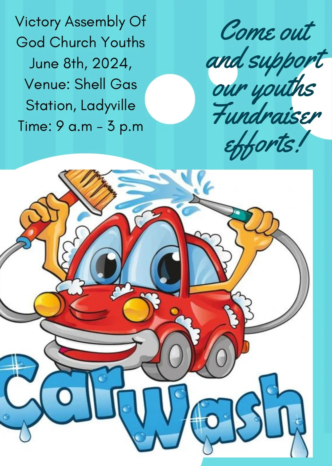 May 8th- Car Wash Fundraiser held at Victory Assembly of God Church